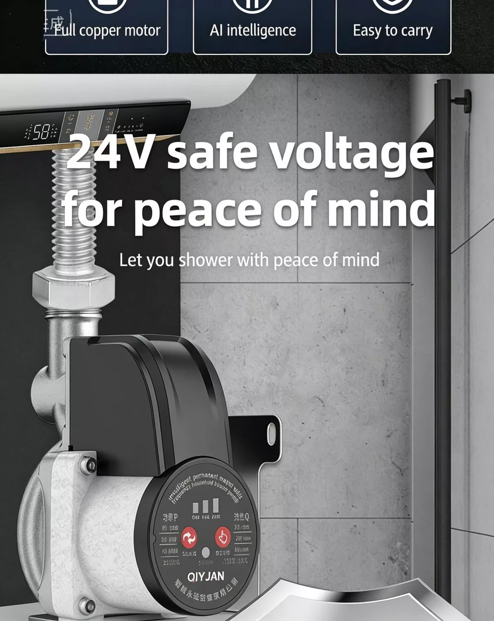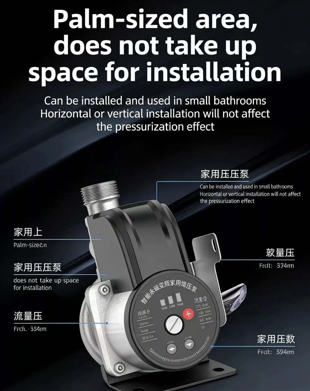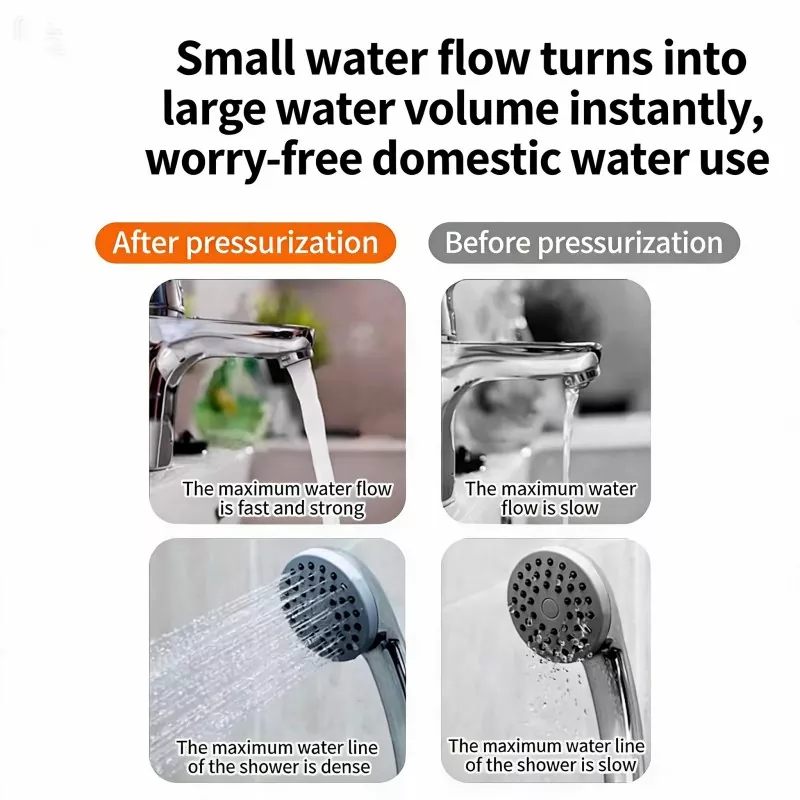 A pequena bomba de reforço inteligente é um dispositivo de aumento de pressão de água doméstico inteligente e de alta eficiência, feito sob medida para resolver os pontos problemáticos da pressão insuficiente da água da torneira no uso diário da família. Suas principais vantagens são as seguintes: