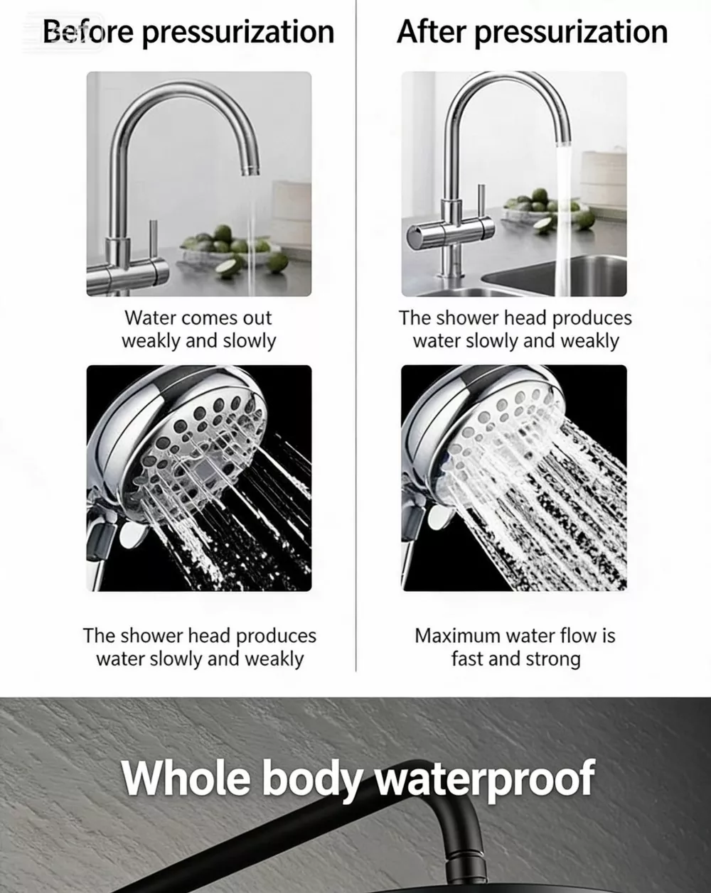 Aumento da pressão do chuveiro: atualize a experiência do chuveiro, acabe com o fraco fluxo de água e as mudanças repentinas de temperatura da água fria e quente.