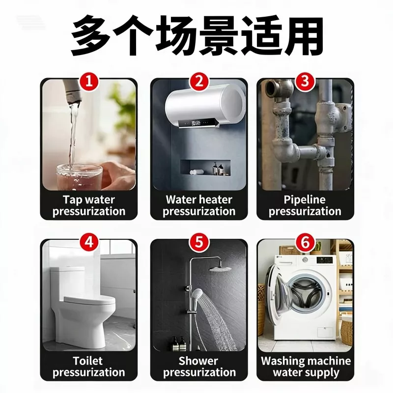 Esta pequena bomba de reforço inteligente é amplamente adaptável a cenários diversificados de demanda doméstica de água, correspondendo com precisão às necessidades de reforço de diferentes equipamentos de água, e seus principais cenários de aplicação incluem: